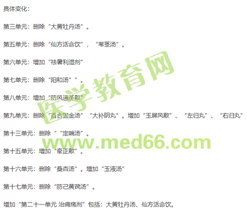 14.第十六單元牛膝的應(yīng)用有變化。骨碎補功效有變化。