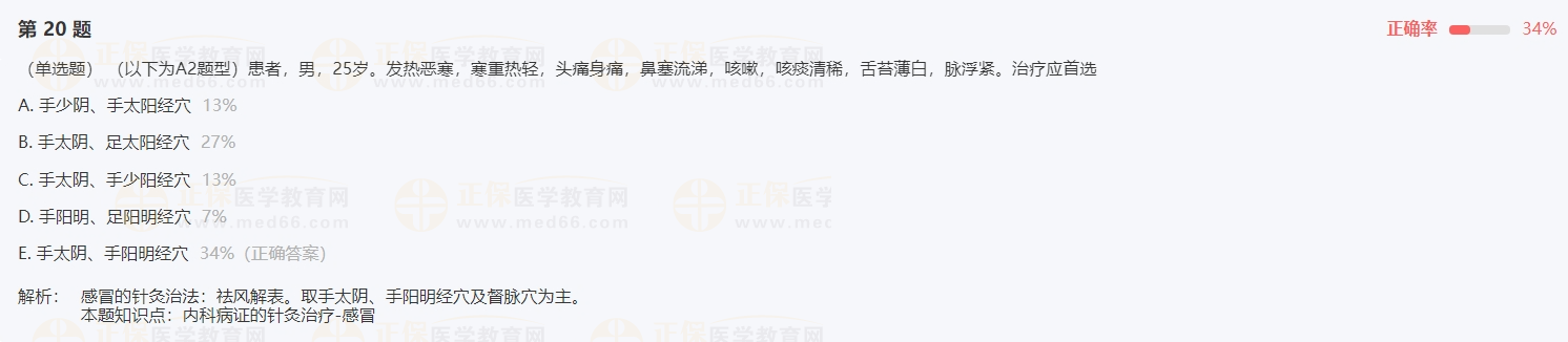 “內(nèi)科病證的針灸治療-感冒”2024年中西醫(yī)助理醫(yī)師入學(xué)測(cè)試題
