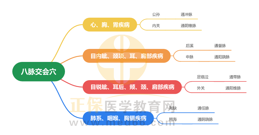 2024年中西醫(yī)助理醫(yī)師針灸學(xué)常見考點“八脈交會穴”思維導(dǎo)圖