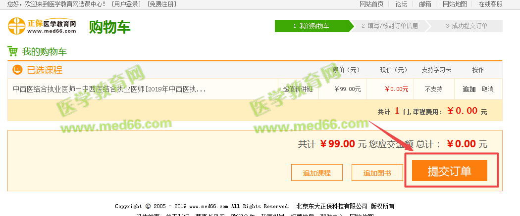 第一步:點(diǎn)擊“0元購(gòu)課”按鈕,加入我的購(gòu)物車;