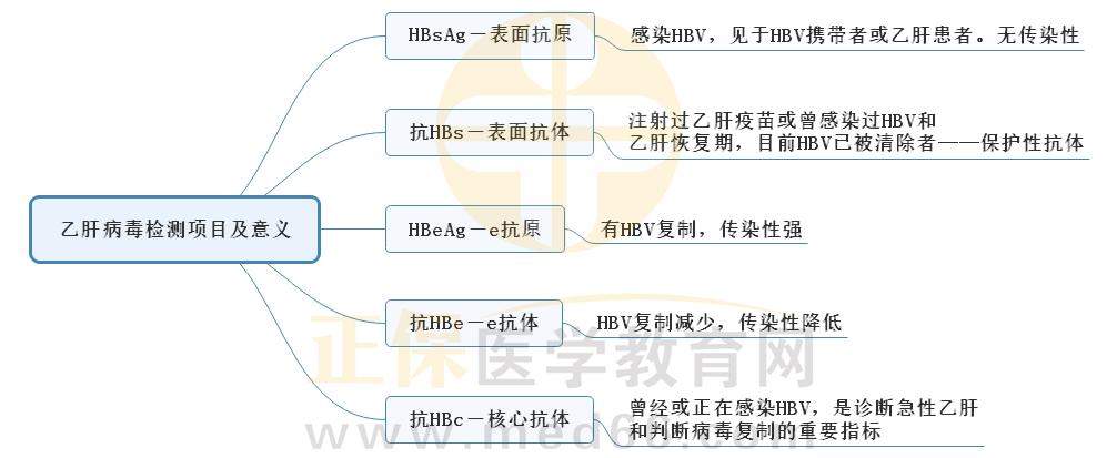 乙肝病毒檢測項目及意義疑難易錯考點思維導圖