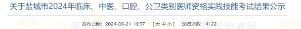 關(guān)于鹽城市2024年臨床、中醫(yī)、口腔、公衛(wèi)類別醫(yī)師資格實(shí)踐技能考試結(jié)果公示