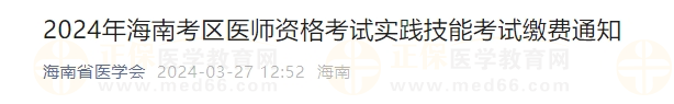 2024年海南考區(qū)醫(yī)師資格考試實(shí)踐技能考試?yán)U費(fèi)通知