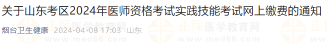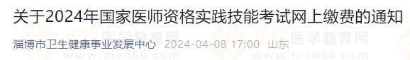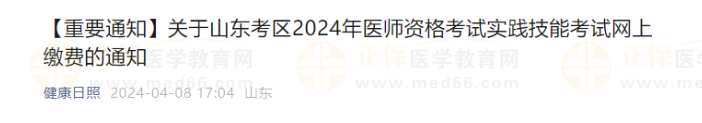 山東省日照考點2024年中西醫(yī)助理醫(yī)師實踐技能網(wǎng)上繳費時間