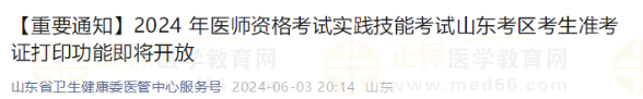 1.2024年國(guó)家醫(yī)師資格考試實(shí)踐技能考試山東考區(qū)考生準(zhǔn)考證打印功能將于2024年6月5日開(kāi)放,請(qǐng)廣大考生及時(shí)打印準(zhǔn)考證。