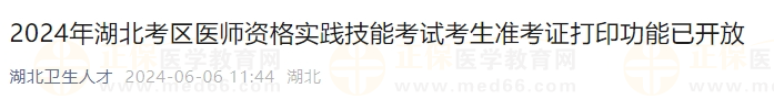 2024年湖北考區(qū)醫(yī)師資格實踐技能考試考生準(zhǔn)考證打印功能已開放,請廣大考生及時打印準(zhǔn)考證。