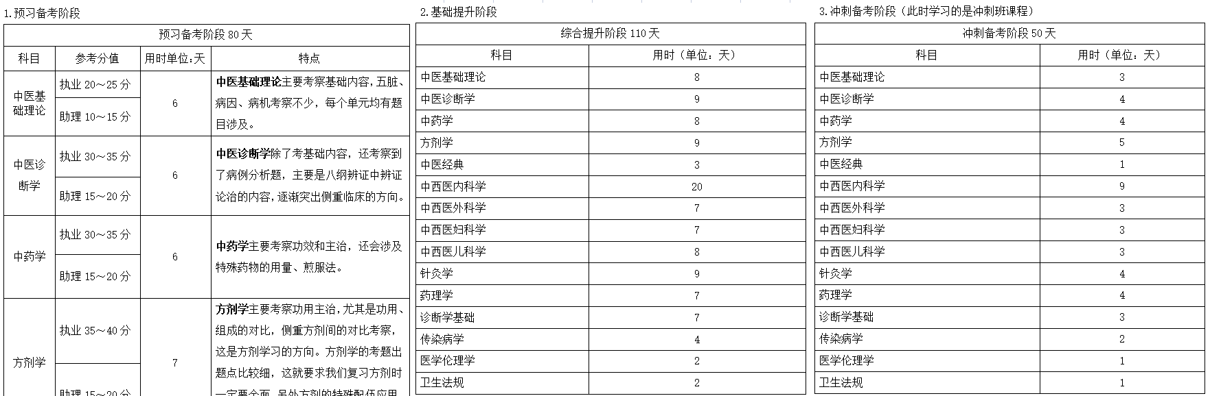 詳細劃分專業(yè)備考階段、綜合提升階段、沖刺備考階段三階段的復習時間及重點,合理規(guī)劃全年備考時間