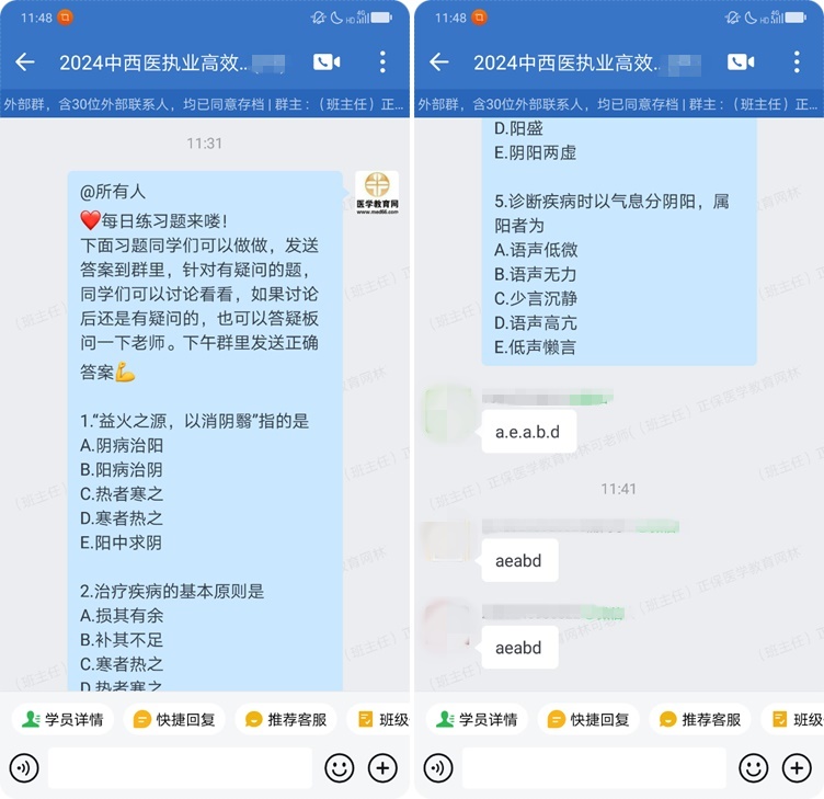 “每日一練”由班主任老師發(fā)放給同學(xué)們練習(xí)鞏固,微信群內(nèi)做題,同班同學(xué)互相監(jiān)督,一起討論交流,2024年醫(yī)師資格考試復(fù)習(xí),你不再是孤軍奮戰(zhàn)!
