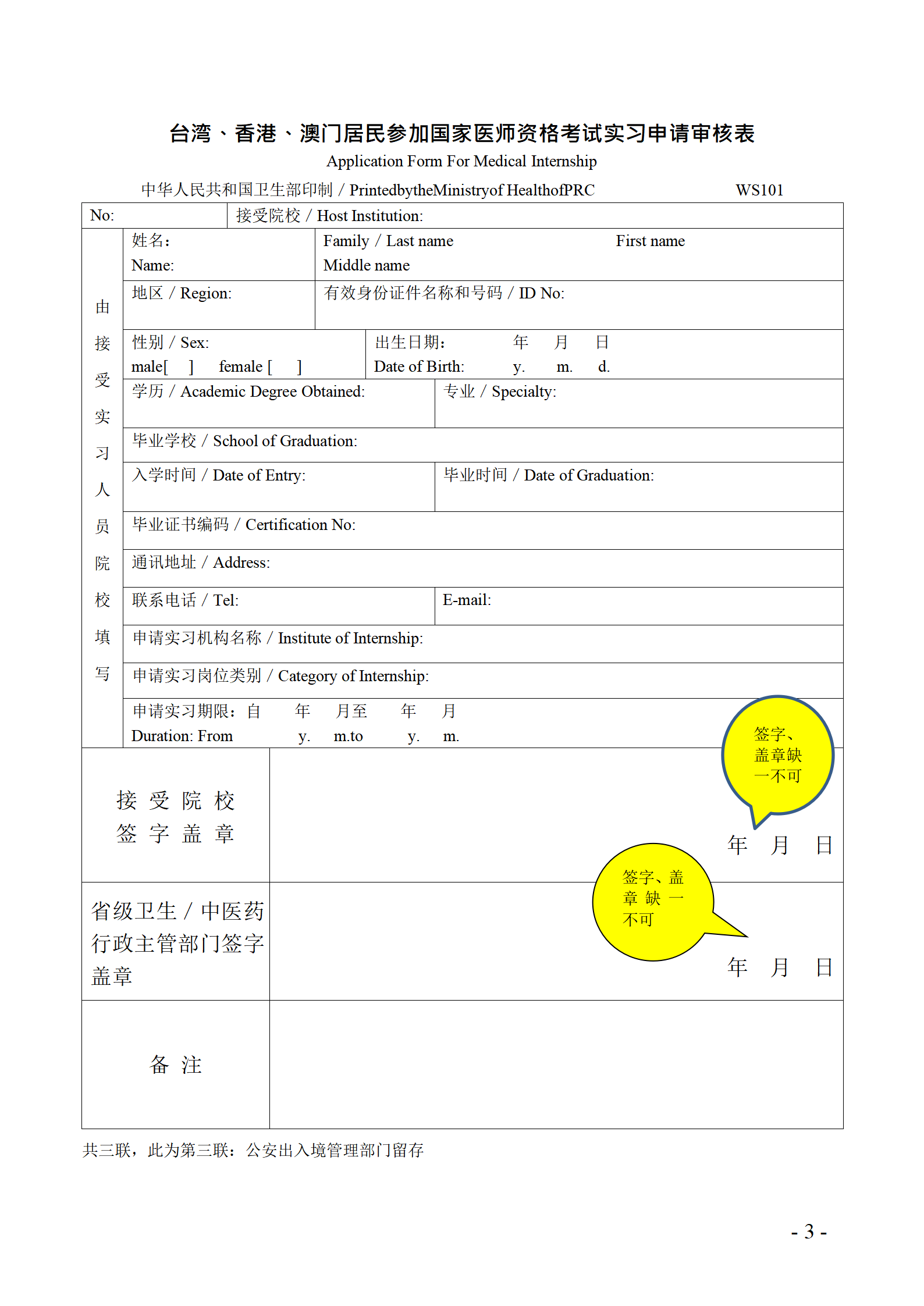 臺灣、香港、澳門居民參加國家醫(yī)師資格考試實(shí)習(xí)申請審核表填寫說明_03