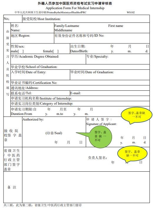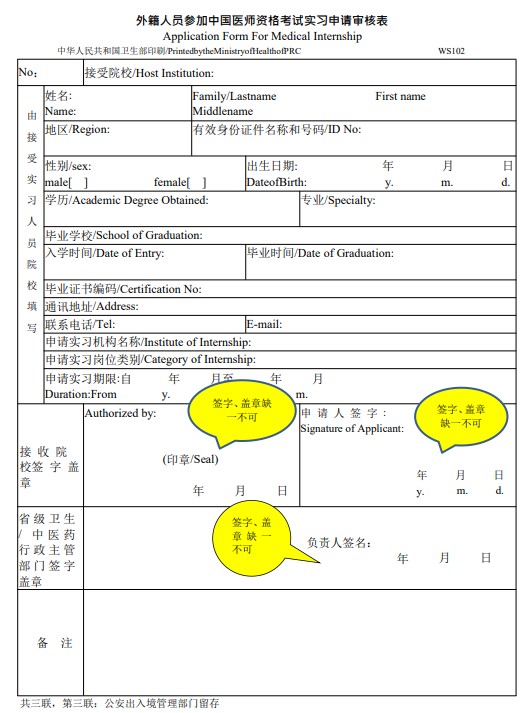 外籍人員參加中國醫(yī)師資格考試實(shí)習(xí)申請(qǐng)審核表3