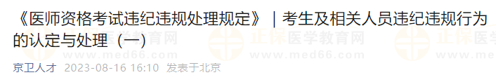 北京考點公布了2023醫(yī)師資格考試考生及相關人員違紀違規(guī)行為的認定與處理!請相關考生仔細查看。