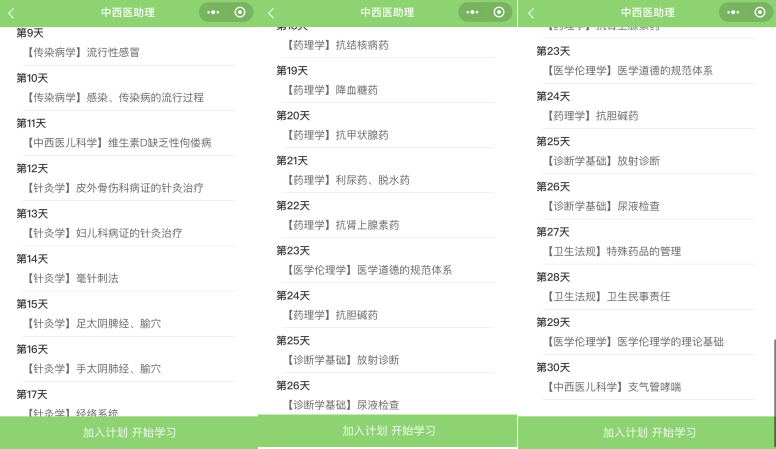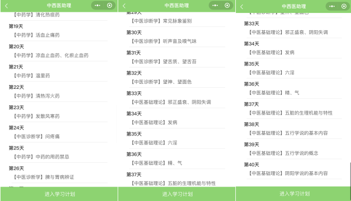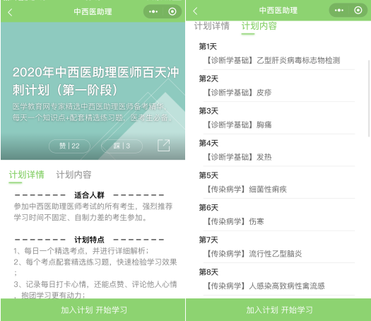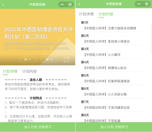 第二步:掃描之后會(huì)進(jìn)入如下截圖頁面,請(qǐng)點(diǎn)擊“進(jìn)入小程序”按鈕,然后“選擇您的備考科目”,如中西醫(yī)執(zhí)業(yè)助理醫(yī)師。選擇備考科目后即進(jìn)入學(xué)習(xí)計(jì)劃選擇的頁面,請(qǐng)選擇“您的備考計(jì)劃”,目前2020年中西醫(yī)結(jié)合執(zhí)業(yè)助理醫(yī)師白天沖刺計(jì)劃已開通三階段,各個(gè)階段的打卡內(nèi)容都是不一樣的,大家可以盡快參與打卡,開啟免費(fèi)刷題模式!