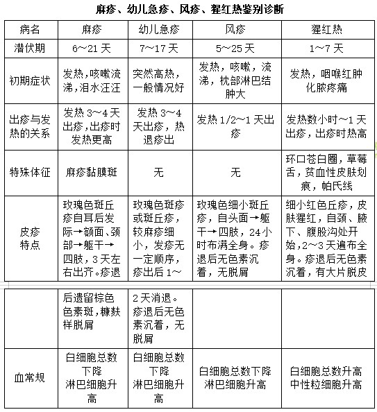 【表格鑒別】麻疹、幼兒急疹、風(fēng)疹、猩紅熱鑒別診斷