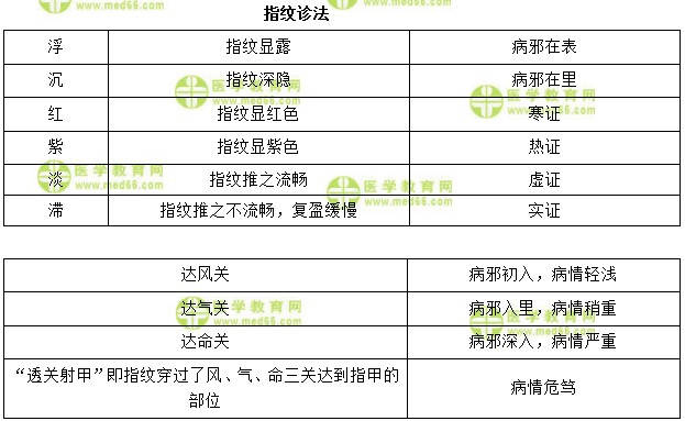 中西醫(yī)結(jié)合兒科學(xué)“指紋診法”易混淆考點(diǎn)速記表