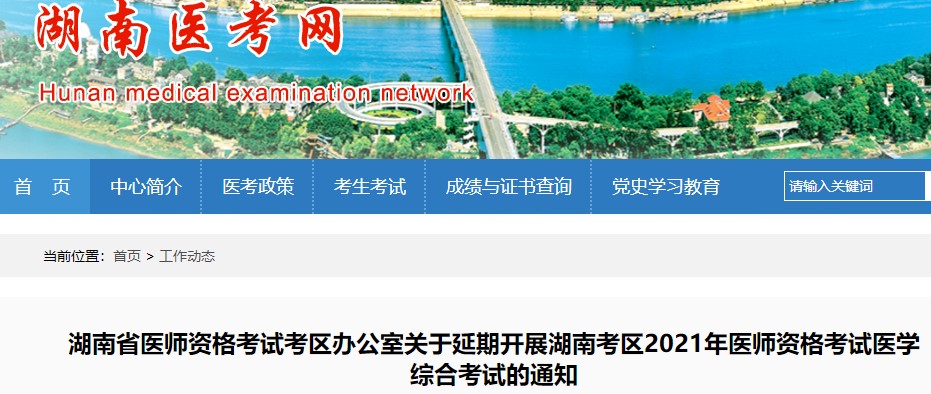 根據(jù)《湖南省醫(yī)師資格考試考區(qū)辦公室關(guān)于延期開展湖南考區(qū)2021年醫(yī)師資格考試醫(yī)學(xué)綜合考試的通知》,湖南考區(qū)2021年醫(yī)師資格考試醫(yī)學(xué)綜合考試延期舉行,并已正式向國家衛(wèi)生健康委提交延期申請。具體考試時間另行確定。查看通知>>