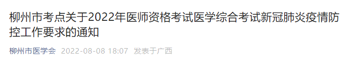 廣西考區(qū)柳州考點2022年中西醫(yī)助理醫(yī)師醫(yī)學綜合考試新冠肺炎疫情防控工作要求的通知