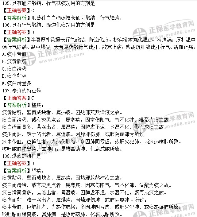 【答案解析】咳聲不揚(yáng),痰稠色黃,不易咯出,多屬熱證,多因熱邪犯肺,肺津被灼所致??扔刑德?,痰多易咯,多屬痰濕阻肺所致。干咳無痰或少痰,多屬燥邪犯肺或陰虛肺燥所致。