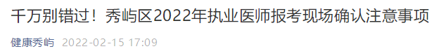 2022年中西醫(yī)執(zhí)業(yè)助理醫(yī)師考試【莆田秀嶼區(qū)】報(bào)考現(xiàn)場審核時間及注意事項(xiàng)