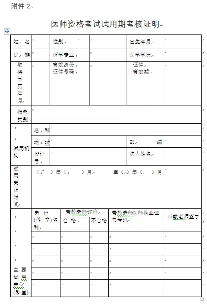 2.醫(yī)師資格考試試用期考核證明
