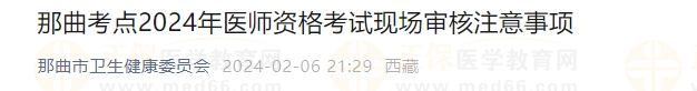 西藏那曲考點關(guān)于2024年醫(yī)師資格考試審核有關(guān)事項的公告已發(fā)布,各位考生請認真閱讀,醫(yī)學教育網(wǎng)小編為大家整理通知內(nèi)容如下: