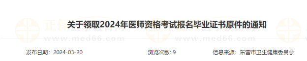 山東濰坊考點2024年國家醫(yī)師資格考試中專學(xué)歷報名考生領(lǐng)取畢業(yè)證書的通知!請相關(guān)考生以通知內(nèi)的方式進行領(lǐng)取!