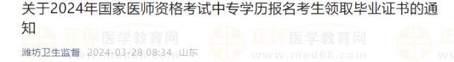 山東濰坊2024年中西醫(yī)助理醫(yī)師中專學(xué)歷考生領(lǐng)取畢業(yè)證書通知