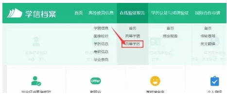 第四步:點擊導航欄中【在線驗證報告】里面的【高等學歷】