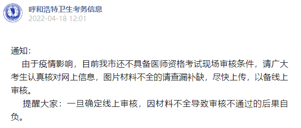 2022年呼和浩特考點(diǎn)醫(yī)師報(bào)名審核工作重要通知!