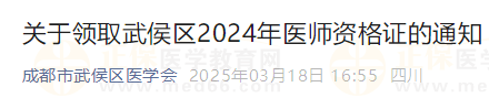 2024年四川省成都武侯區(qū)中西醫(yī)助理醫(yī)師資格證領(lǐng)取時(shí)間