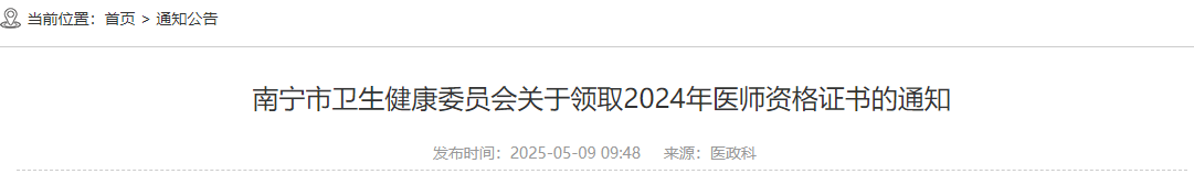 南寧市衛(wèi)生健康委員會(huì)關(guān)于領(lǐng)取2024年醫(yī)師資格證書的通知