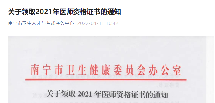 南寧市衛(wèi)生健康委員會辦公室關(guān)于領(lǐng)取2021年醫(yī)師資格證書的通知