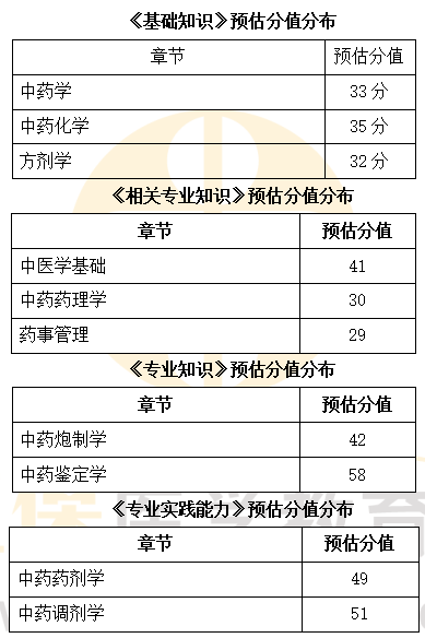 主管中藥師考試分值: