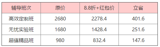 80元紅包可用于高效定制班、50元學(xué)費紅包用于無憂實驗班、30元學(xué)費紅包用于超值精品班。
