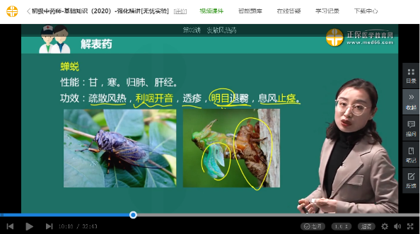 1.有關蟬蛻的明目退翳功效,課程截圖如下: