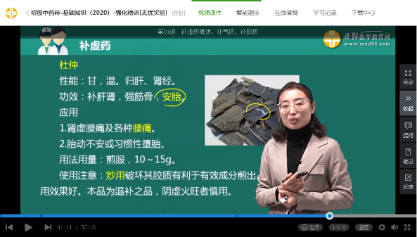 2.有關杜仲具有安胎的功效,課程截圖如下: