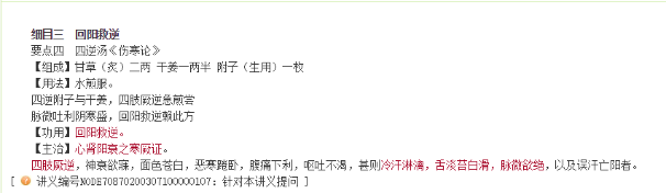 3.有關四逆湯的主治為心腎陽衰之寒厥證,課程講義截圖如下: