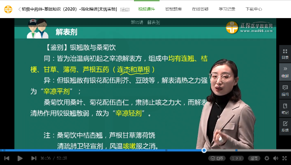4.關于銀翹散與桑菊飲的共同藥物連翹、薄荷、桔梗、甘草、蘆根,課程截圖如下: