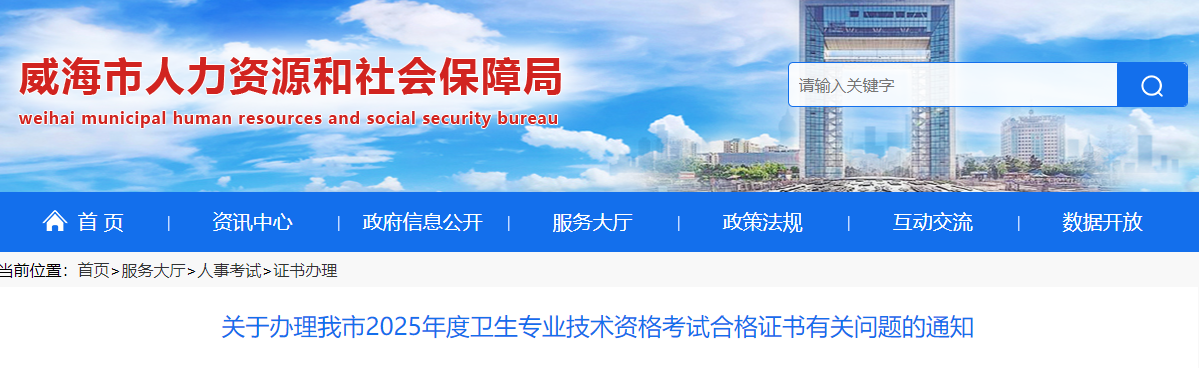 威海關于辦理2025年度中藥學職稱考試合格證書有關問題的通知