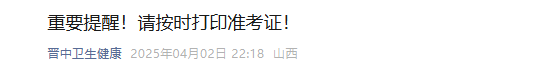 【山西】2025中藥學(xué)職稱考試/護(hù)士執(zhí)業(yè)資格考試準(zhǔn)考證打印提醒