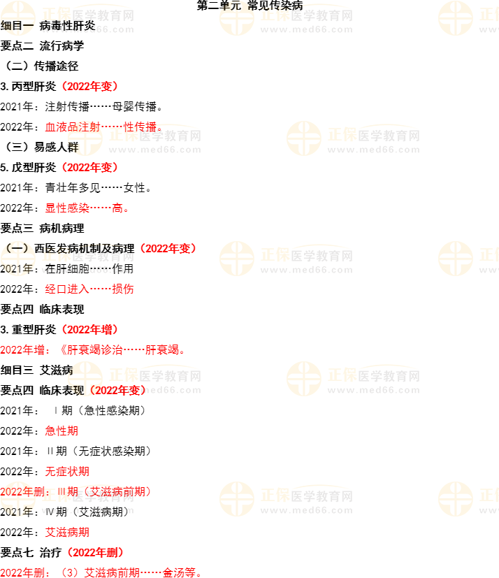 2022年中醫(yī)內(nèi)科主治醫(yī)師《傳染病學(xué)》教材變動(dòng)匯總