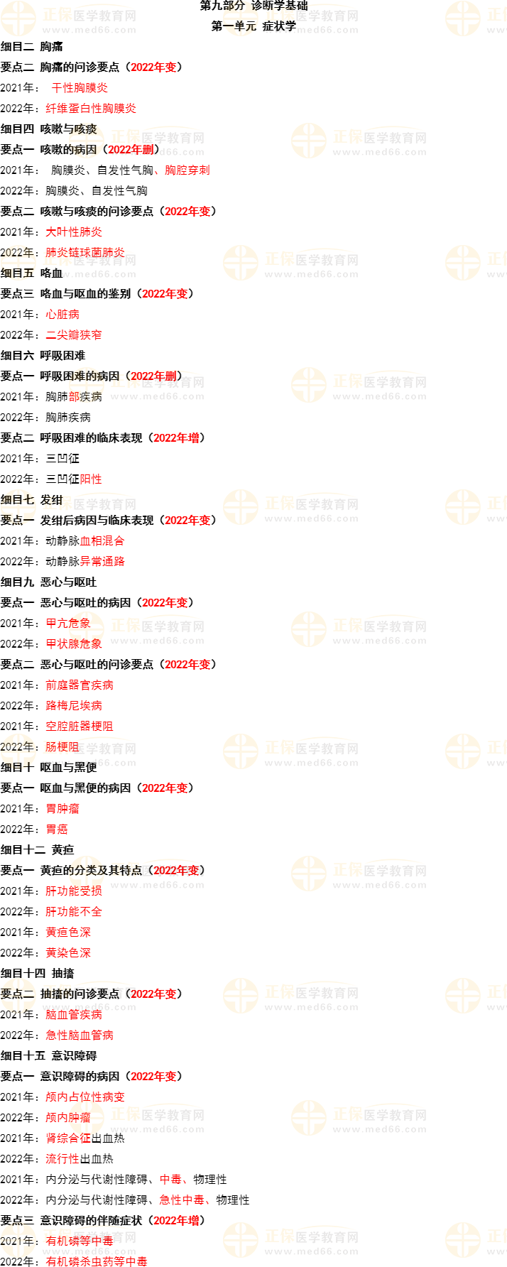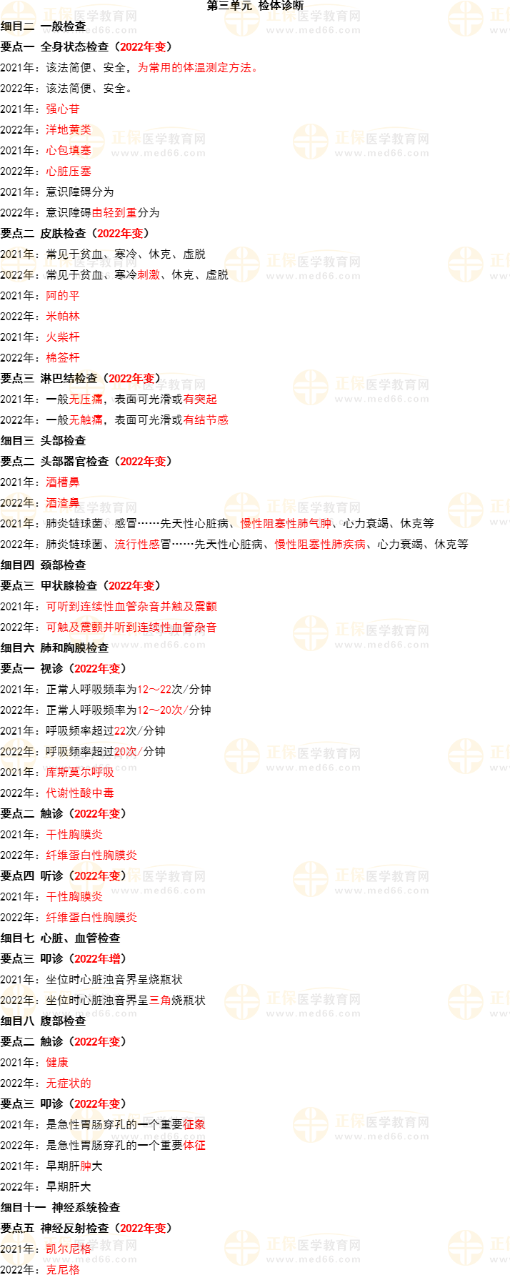 2022年中醫(yī)內(nèi)科主治醫(yī)師《診斷學(xué)基礎(chǔ)》教材變動(dòng)匯總