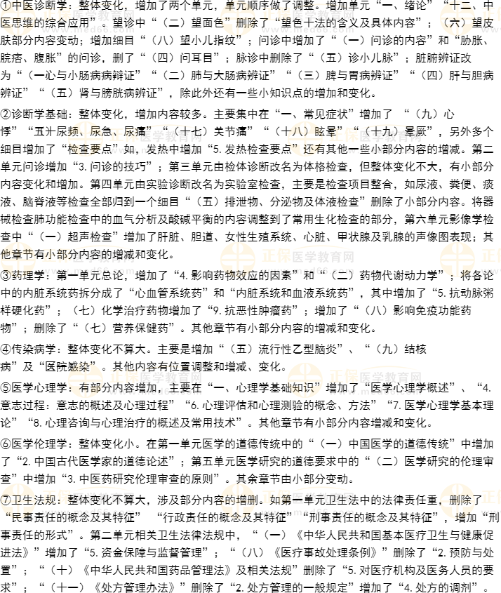 二、2025年中西醫(yī)內(nèi)科主治醫(yī)師應(yīng)試指南大綱具體科目變動(dòng)情況