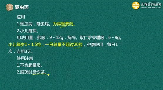 中藥的驅(qū)蟲藥是中藥學(xué)近3年的高頻考點(diǎn),此部分雖然內(nèi)容比較少,但相對考查較多,主要考查藥物功效主治及驅(qū)蟲藥的適用范圍。