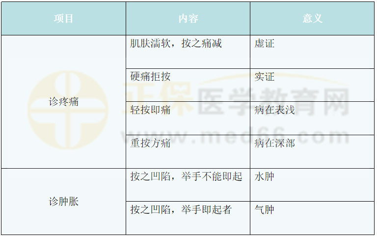 按肌膚的內(nèi)容及臨床意義:診疼痛和腫脹