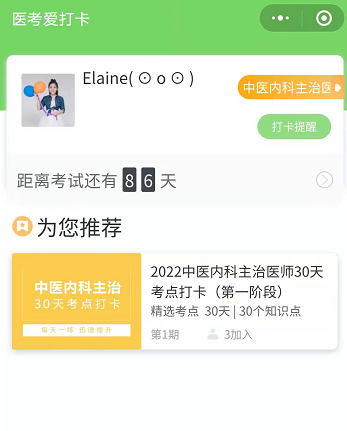 2022年中醫(yī)內(nèi)科主治醫(yī)師【醫(yī)考愛打卡】刷題小程序上線!