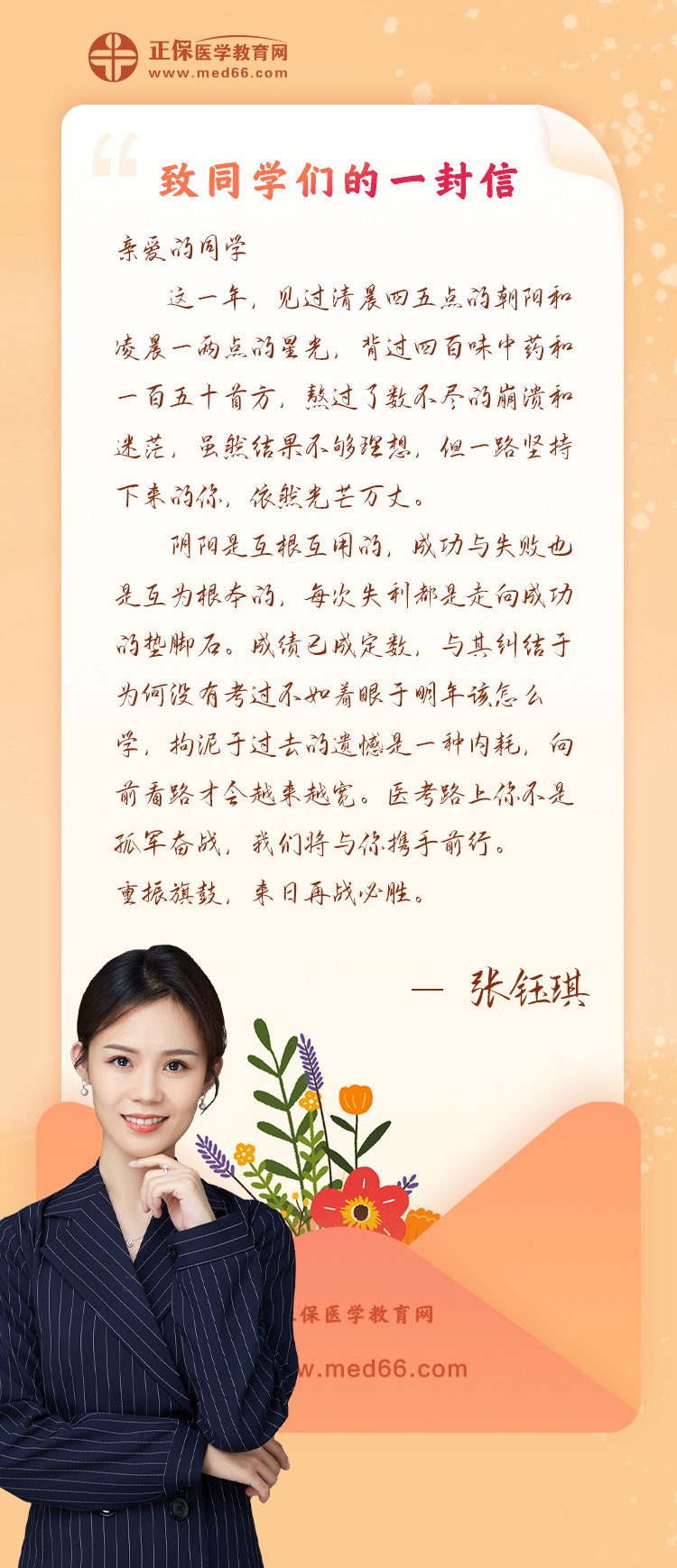 醫(yī)考路上你不是孤軍奮戰(zhàn),我們將與你攜手前行-醫(yī)學(xué)教育網(wǎng)講師(張鈺琪)致同學(xué)的一封信!