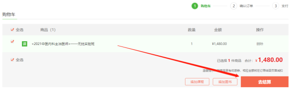 在購物車內(nèi)確認已選課程,確認無誤后點擊“去結(jié)算”;