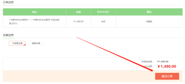 在訂單頁確認無誤后,點擊“提交訂單”;