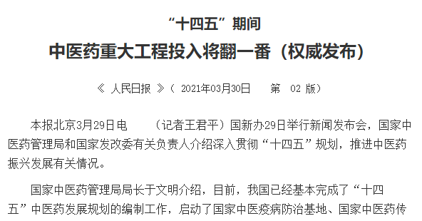 中醫(yī)藥重大工程投入將翻一番,推進中醫(yī)藥振興發(fā)展!