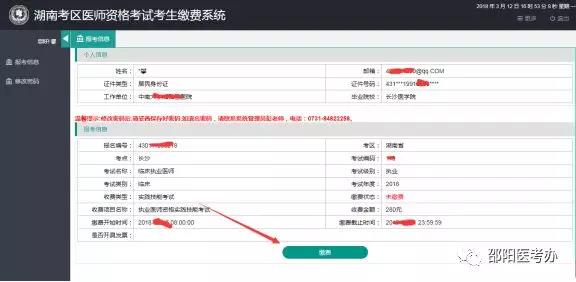 1、考生繳費(fèi)須先在手機(jī)端使用微信關(guān)注“湖南非稅移動(dòng)繳費(fèi)”公眾號,然后在電腦端登錄“湖南醫(yī)考網(wǎng)”進(jìn)入《湖南考區(qū)醫(yī)師資格考試考生繳費(fèi)系統(tǒng)》(以下稱《繳費(fèi)系統(tǒng)》)獲取相關(guān)信息后進(jìn)行繳費(fèi)(溫馨提示:支付前,請確保微信錢包中有足夠余額)。如遇系統(tǒng)繁忙或鏈接超時(shí)等異常情況,請?jiān)谝?guī)定時(shí)間內(nèi)另選時(shí)間繳費(fèi)(錯(cuò)峰繳費(fèi))。